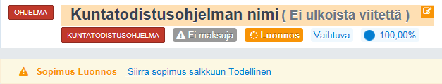 Tämän jälkeen, jos ohjelman tietoihin ei ole muuta lisättävää siirretään sopimus todelliseen salkkuun kohdasta Siirrä sopimus salkkuun Todellinen.