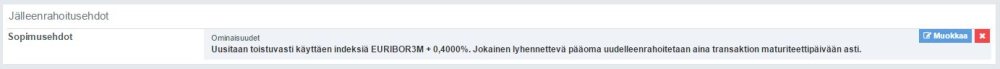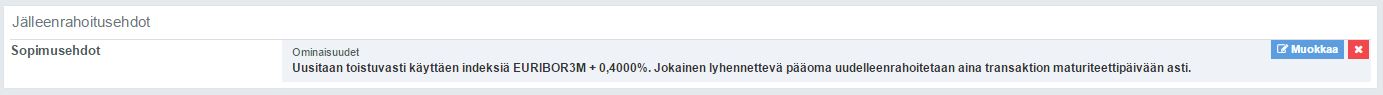 Jälleenrahoitusehdot löytyvät myös jokaisen lainan perustiedoista, jolloin ehto on mahdollista säätää myös lainakohtaisesti.