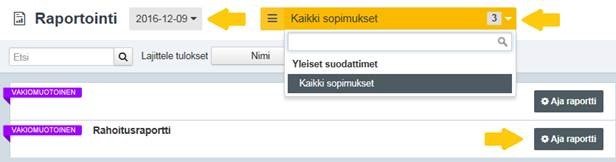 Ennen raportin luontia on määriteltävä raportointipäivä sekä haluttu suodatin.